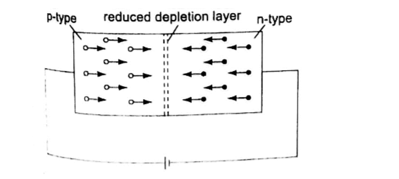 The negative terminal of the battery is connected to the p-type region while the n-type isconnected to positive terminal.