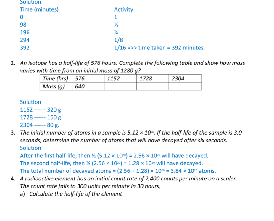 1. The half-life of a sample of a radioactive substance is 98 minutes.
