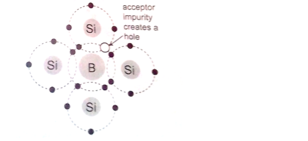 The impurity within the semi-conductor accepts atoms with free electrons (dopants). This forms a 'hole' within the semi-conductors.